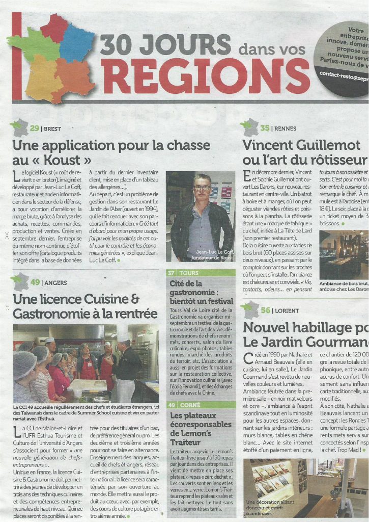 Zepros.fr avec son édition spéciale restauration, magazine en ligne et papier dont plus de 50 000 exemplaires sont diffusés auprès des professionnels de la Restauration, publie un article sur l’application Koust.