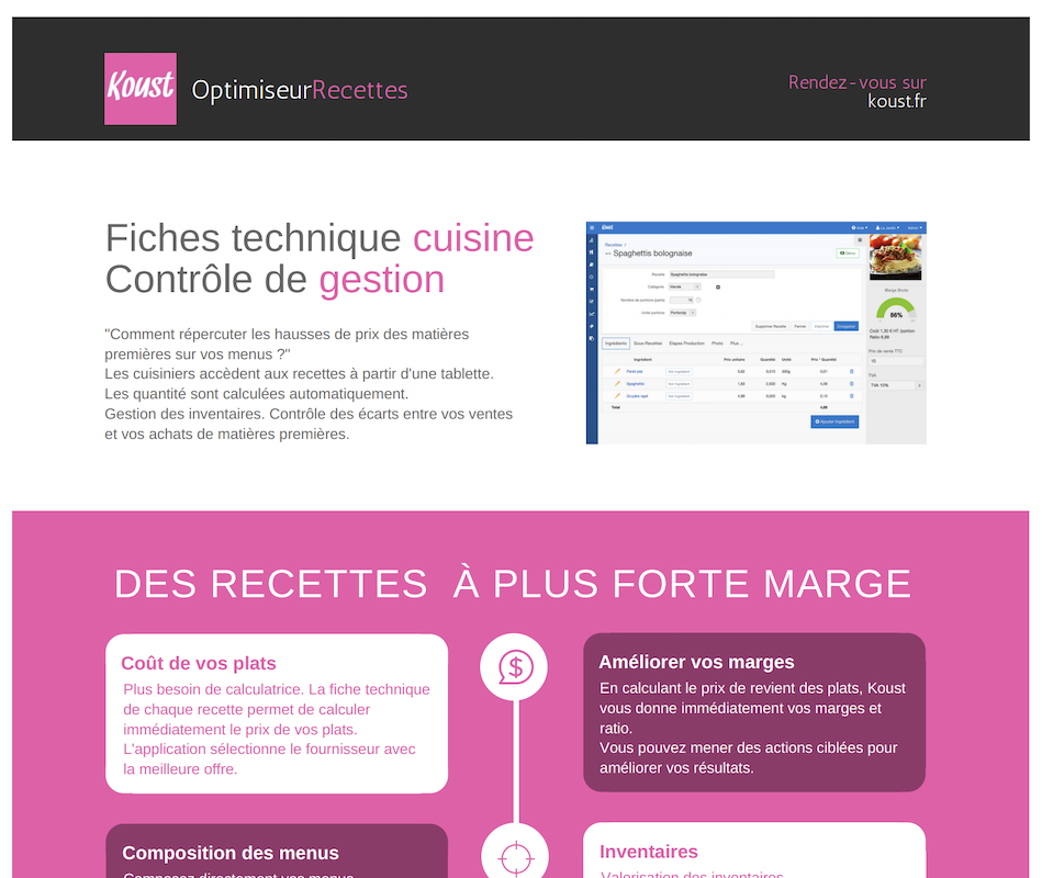 Koust est une application de gestion des métiers du CHR. Il facilite la prise de décision, les comma...
