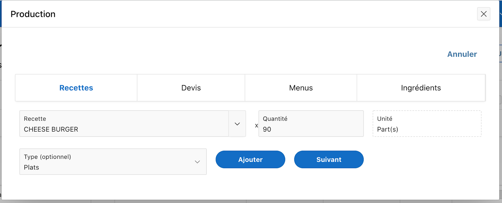- Le nombre de parts que vous souhaitez produire pour votre recette.